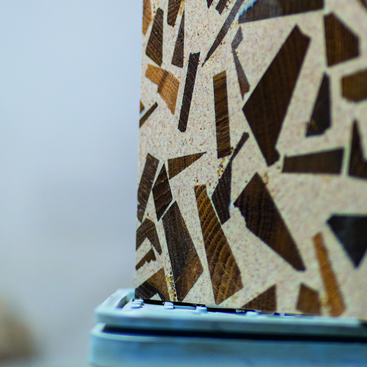 To wzór oparty na drobnych, delikatnych fragmentach drewna zatopionych w transparentnej żywicy.
